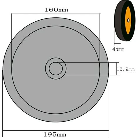 Caractéristiques techniques : diamètre extérieur :195 mm Diamètre du roulement (moyeu intérieur) : 12,9 mm Largeur de la bande de roulement: 45 mm Dents: 53