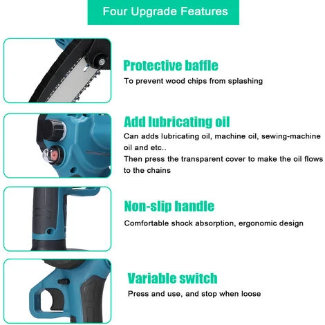 Il s’agit d’une sorte de scie d’élagage de qualité, fabriquée avec des matériaux de qualité, pratique, facile à utiliser, large gamme d’applications, longue durée de vie. Adopte un moteur à balais, démarrage rapide, freinage opportun, régulation de la vitesse en douceur dans une large gamme, contrôle relativement simple du circuit, etc. La chaîne de scie a été profondément trempée à haute température, avec des dents de scie acérées, plus résistantes à l’usure, coupe douce. Parfait pour l’élagage, le fendage du bois de chauffage, la coupe du bois, etc. Vous pouvez l’essayer.