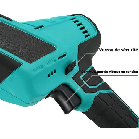 Moteur en cuivre pur, puissance élevée, vitesse de coupe rapide, efficacité améliorée, longue durée de vie de la batterie (24 V), aucun dommage à l’écorce. Commutateur de haute qualité, réglage de la vitesse, changement de vitesse en continu.