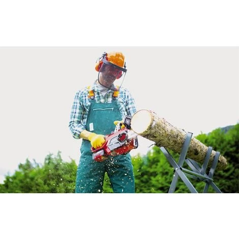 - La poignée ergonomique en revêtement « softgrip » assure un bon maintien de la tronçonneuse sans fil.
