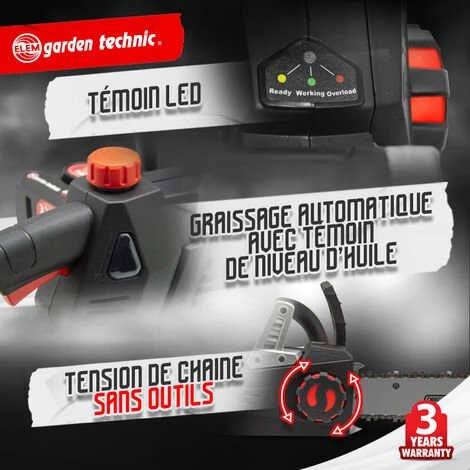 Cette tronçonneuse rechargeable 40V (2x20V) vous permettra de réaliser vos travaux d’élagage et de découpe de votre bois de chauffage sans effort . Elle s’adapte facilement à vos besoins. Elle vous offre une grande liberté de mouvement sans le bruit, les gaz d’échappement, les difficultés de démarrage d’un moteur thermique.