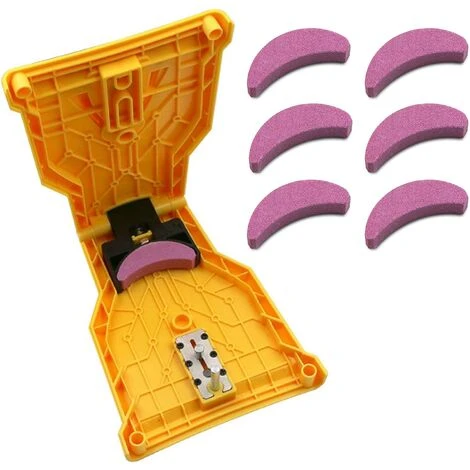【6 pierres à aiguiser】 : l’affûteur de tronçonneuse est livré avec 6 pierres à aiguiser remplaçables. Cet affûteur de tronçonneuse convient aux affûteurs de queue et aux lames de scie pour affûter des performances de coupe optimales.