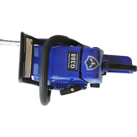Tronçonneuse Holzfforma G388 avec moteur 2 temps de 72.2cc puissance 3.3Kw à 10000 tr/min. Chaine 3/8. Contenances : Carburant 0.68 litre, Huile 0.36 litre. Accès rapide au filtre à air, tension latéraleContenances : Carburant 0.68 litre, Huile 0.36 litre. Accès rapide au filtre à air, tension latérale. Poids : Environ 6.7Kgs à vide (sans guide chaine) soit 7.8Kgs équipée et pleins faits Répond aux dernières normes Européennes en vigueur (certificat disponible sur demande) IMPORTANT : Les tronçonneuses Holzfforma ont un suivi de pièces détachées, nous sommes en mesure de vous fournir toutes les pièces pour cette tronçonneuse qui offre un excellent rapport qualité prix. Garantie 1 an pièces. Existee avec un guide de 50,60 ou 70cm de coupe. «