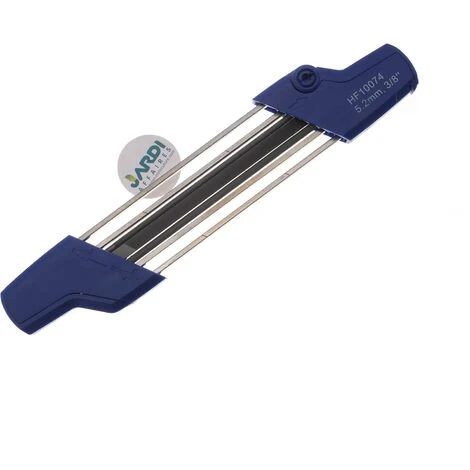 Affuteur de chaine manuel double action pour chaine de tronçonneuse au Pas de 3/8 (lime ronde de 5.2mm). Cette affuteuse manuelle offre une excellente prise en main et permet un affutage précis des gouges de la chaine mais également du limiteur de profondeur (rabot), avec un seul outil votre chaine bénéficie d’un affutage professionnel en quelques minutes et retrouve sa qualité de coupe d’origine. Également disponible avec lime de 4.8mm pour chaine au Pas de 325 et lime de 4mm pour chaine au Pas de 3/8Lp ou 1/4. Découvrez toutes nos solutions d’affutage manuel ou électrique pour vos chaines de tronçonneuse