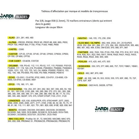 La chaine Oregon 73LPX072E est une chaine de haute qualité professionnelle à dents carrées, la qualité de son acier lui offre une grande résistance à l’usure et un affutage facilité et d’une grande tenue pour répondre aux utilisateurs les plus exigeants. Pas de la chaine 3/8, Jauge 058 soit 1.5mm, 72 maillons entraineurs. Une chaine de qualité c’est une vitesse de travail plus élevée, moins d’effort pour la tronçonneuse et son utilisateur et une durée de vie accrue.