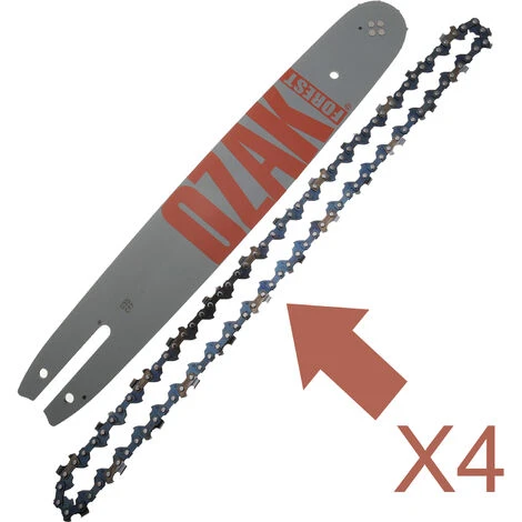 Ensemble comprenant 1 guide Pro 35cm + 4 chaînes pour tronçonneuse 50 maillons entraineurs Pas 3/8 jauge 0.50 (1.3mm). Correspondances Oregon : Guide 140SPEA074, Chaînes 91-50E, se monte sur les marques ALPINA, BLITZ, CASTOR, DYNAMAC, EFCO, GARDEN, METABO, NAUTAC, OLEO MAC, OLYMPYK, STIHL, STIGA, VAP, voir tableau d’affectation en photo. Découvrez également notre kit 1 guide + 1 chaine 50 maillons entraineurs ou guide vendu seul.