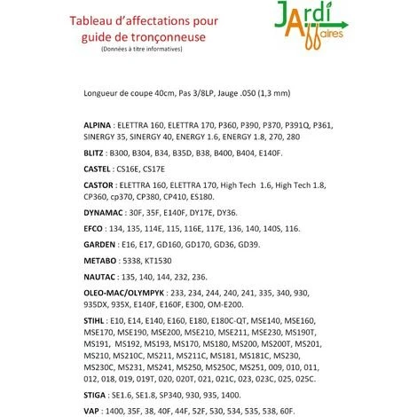 Ensemble Oregon comprenant 1 guide de 40cm 160SDEA074 + 2 chaines Oregon 91P055E Pas 3/8LP, Jauge 1,3mm avec 55 maillons entraineurs. Cet ensemble offre un rapport qualité prix très avantageux et permet aux utilisateurs d’accéder à la qualité des produits Oregon à un prix très compétitif. Ce combo se monte essentiellement sur ALPINA, BLITZ, CASTEL, CASTOR, DYNAMAC, GARDEN, METABO, NAUTAC, OLEO MAC, STIHL, STIGA et VAP. Version avec guide et chaine professionnels également disponible (160SXEA074)