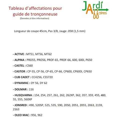 Guide Oregon 188VXLHZ095 modèle à nez large de la gamme professionnelle Versacut, ce guide offre une longueur de coupe de 45cm, Pas de chaine 3/8, Jauge 058 (1.5mm) Montage avec 68 maillons entraineurs, pour les modèles avec 64 maillons choisir le modèle 188VXLHK095 (Nez étroit) Se monte principalement sur tronçonneuses de marque Active, Alpina, Castel, Castor, Cub Cadet, Dynamac, Dolmar, Husqvarna, Jonsered et Oleo Mac (autres marques nous consulter) ATTENTION : Merci de respecter notre tableau d’affectation par marque et par modèle en photo sur la fiche produit ou de nous contacter si votre modèle n’apparait pas