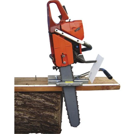 Scierie mobile pour la réalisation de poutres et de traverses avec une tronçonneuse. Cette scierie permet de déligner le bord du tronc proprement pour concevoir une poutre, un chevron ou une traverse en toute simplicité et rapidement. Elle se monte sur toutes les tronçonneuses (fixation sur le guide) équipées d’un guide de minimum 40cm de coupe et maximum 60cm de coupe (+ à tester en fonction des conditions de travail et du bois) Livrée avec 5 rails de guidage qui devront être monté sur une planche épaisse qui permettra un bon guidage.