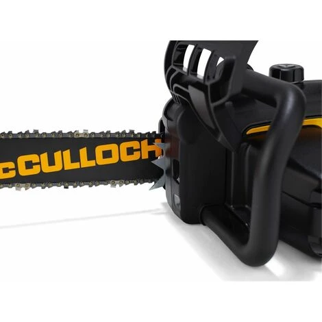 La tronçonneuse électrique McCulloch CSE1835 est performante et simple d’utilisation. Elle est idéale pour la coupe de bois de chauffage. Elle répond parfaitement aux besoins des particuliers à la recherche d’une tronçonneuse électrique légère et facile à prendre en main. Cette tronçonneuse électrique McCulloch est équipée d’un indicateur de frein de chaîne visible et repérable immédiatement par sa couleur rouge. Une fenêtre transparente vous permet de contrôler le niveau d’huile de chaîne à tout moment. Le frein de la tronçonneuse électrique McCulloch CSE1835 s’active soit manuellement soit par inertie en cas de mouvement non contrôlé. Cette tronçonneuse électrique est dotée d’un moteur de 1800W et un guide (pas de chaîne) de 35 cm.