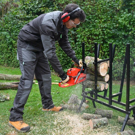 Cette tronçonneuse thermique est maniable, c’est le bon compromis entre puissance, poids et taille de guide. Elle permet de couper de gros arbres grâce au guide de 50 cm.