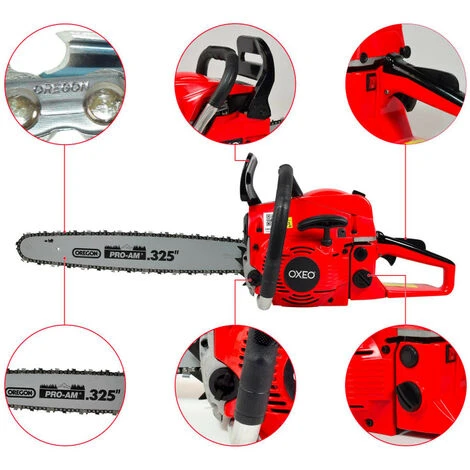 La tronçonneuse est équipée d’un guide-chaîne PRO AM 3,25″ de marque OREGON. Cela lui garantit un guide solide et durable haut de gamme. Elle est livrée avec une chaîne supplémentaire de marque OREGON. La marque est reconnue dans le monde entier, chez les particuliers et les professionnels dans le domaine des tronçonneuses.
