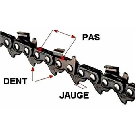 Pour connaitre le nombre de dents d’entraineurs, il vous suffit de démonter la chaine et de les compter. (entraineur = dent du bas sur la photo,partie qui rentre dans le guide)