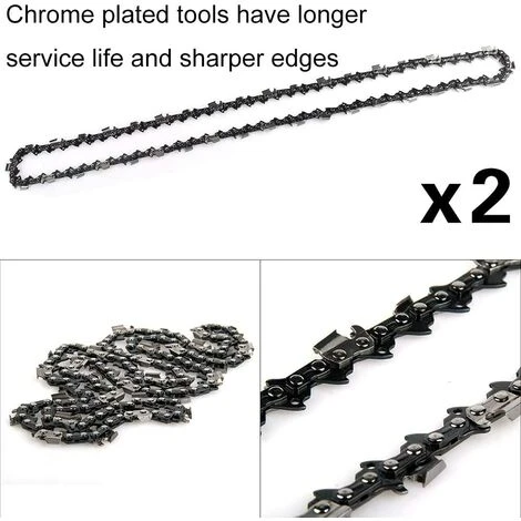 Paramètres: Le nombre de maillons d’entraînement: 59, la chaîne convient à une tronçonneuse de 16 pouces / 40CM. La jauge de profondeur inclinée peut réaliser une coupe fluide à grande vitesse tout en réduisant le jeu et les vibrations.