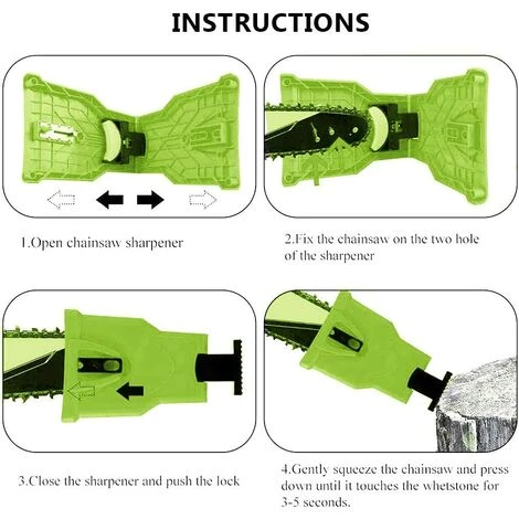 FACILE À INSTALLER ET À UTILISER: La pierre à aiguiser est installée dans l’affûteur de tronçonneuse et est prête à l’emploi pour un affûtage instantané. L’affûteur de chaîne est très facile à utiliser. Insérez la lame de tronçonneuse dans les deux trous de l’affûteur de tronçonneuse. Fermez et verrouillez ensuite l’affûteur de chaîne. Serrez légèrement la tronçonneuse. Gardez la chaîne et les rails huilés pour réduire la friction et prolonger la durée de vie.