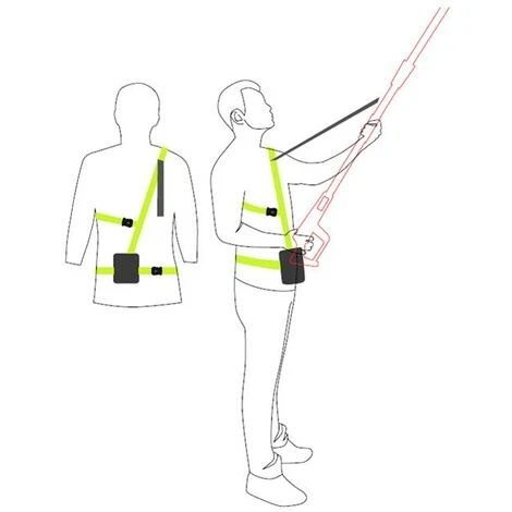 – Harnais bretelle ergonomique avec baudrier et sangle de retenue : excellente répartition du poids et grand confort de travail pour moins de fatigue