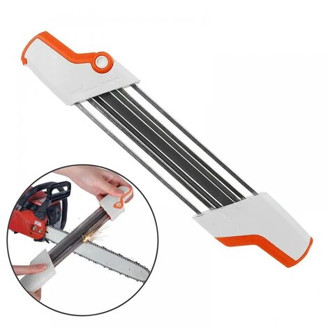 Accessoire pratique pour un affûtage rapide des dents et de la jauge de profondeur en une seule opération.